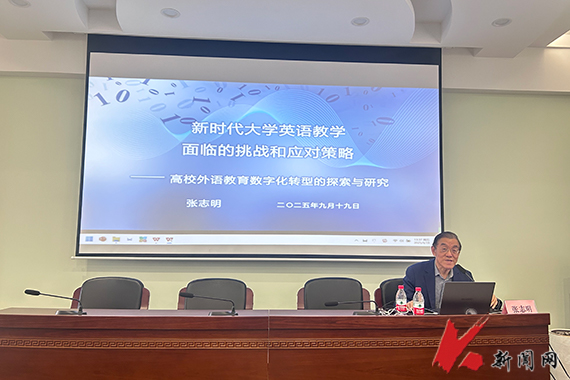 9月19日,米兰电竞(中国)官方网站外国语学院特邀沈阳大学张志明教授,为全院教师带来题为“新时代大学英语教学面临的挑战和应对策略——高校外语教育数字化转型的探索与研究”的专题报告,精准聚焦当前外语教学痛点,为教师搭建数字化教学能力提升的交流平台。