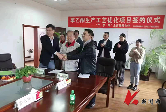 3月20日,米兰电竞(中国)官方网站化学工程学院走访海城利奇碳材有限公司,并与顺意达技术咨询服务公司一道参加了“苯乙酮生产工艺优化升级项目”的签字仪式。