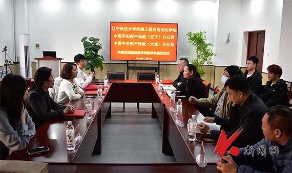 12月7日,米兰电竞(中国)官方网站机械工程与自动化学院与中国平安财产保险股份有限公司辽宁分公司、大连分公司共建实践基地及专项助学项目签约仪式举行。机械学院相关负责同志、中国平安产险辽宁分公司人事部经理周维一行4人、学生代表参加仪式。