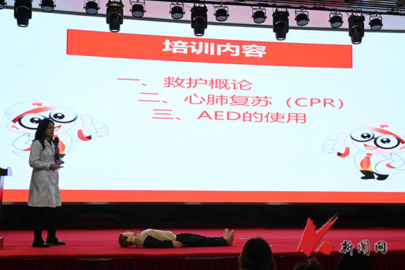 培训中,程瑶以科普的方式,通过课件及救护辅助设备图文并茂地讲解了应急救护的基本知识,对心肺复苏救助的规范流程进行了深入浅出地讲解,对救护过程中关键环节的处理进行了清晰的指导。随后,程瑶安排专业的学生对急救流程进行了现场演练,从心肺复苏的操作流程到除颤仪的正确使用步骤进行了全面的示范,同时请现场的学生体验急救过程。