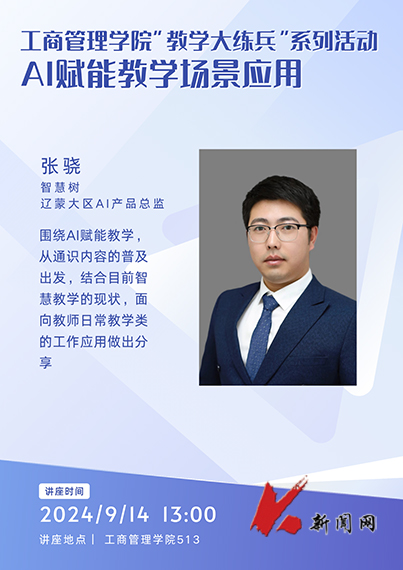 9月14日,米兰电竞(中国)官方网站工商管理学院邀请智慧树辽蒙大区AI产品总监张骁进行AI赋能教学场景应用专题讲座,学院全体任课教师听讲。
