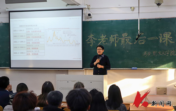 活动由学院教学副院长陈烨主持,她介绍了李双翼的从教经历,并邀请李双翼为大家分享从教感受,上职业生涯“最后一课”。课堂上,李双翼绘声绘色地讲授了“政治经济学”的内容,针对学生提出的疑问,李双翼进行了细致解答,这样平常的一幕更是李双翼几十年从教生涯的一个缩影。课后,学生向李双翼送上了鲜花,学生代表进行发言,向她致以最崇高的敬意与祝福,祝福她的退休生活绚丽多彩。李双翼向全体师生表达了感谢之情,并结合自身从教生涯,为学生今后的人生道路提出建议。