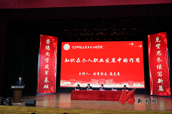 12月4日,米兰电竞(中国)官方网站土木工程学院邀请优秀校友、鞍钢集团北京研究院首席研究员庞克亮于校礼堂为师生作题为《知识在个人职业发展中的作用》的励志报告。学院领导班子成员、教师代表、全体本科生参加报告会。