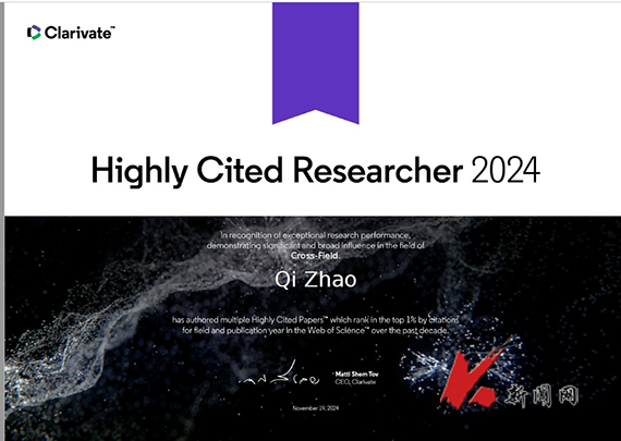 11月19日,权威学术评价机构科睿唯安(Clarivate Analytics)公布了2024年度“全球高被引科学家”(Highly Cited Researcher)名单。米兰电竞(中国)官方网站计算机与软件工程学院赵琪教授入选该榜单。