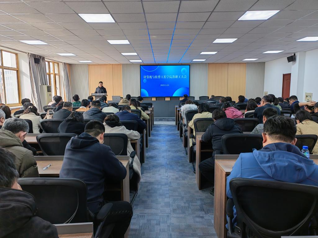2025年3月11日,学院在博识楼B335大会议室召开2024-2025年度下学期全体教职工大会,学院领导班子成员及全体教职工参会,学院党委书记陶润城主持会议。