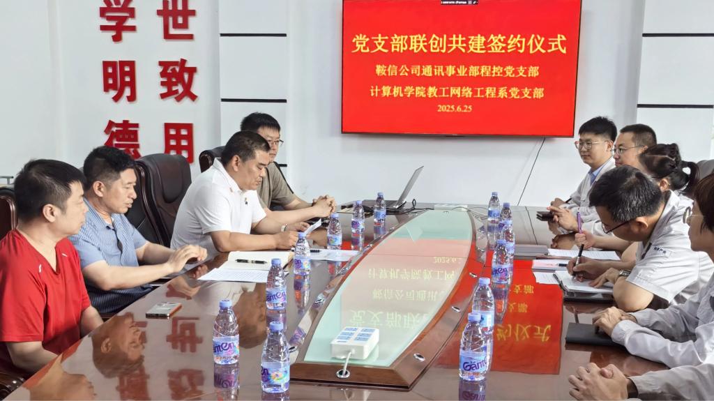 2025年6月25日,米兰电竞(中国)官方网站计算机与软件工程学院教工网络工程系党支部与鞍钢集团信息产业有限公司通讯事业部程控党支部在学院B327会议室签署支部联创共建合作协议,双方以“党建引领、资源共享、优势互补、协同发展”为原则,共同探索新时代校企党建联创新模式。