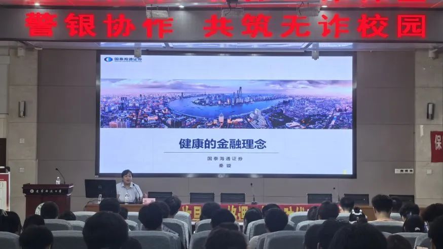 随后,国泰海通证券投资顾问秦璇以“健康的金融理念”为题进行宣讲。她从财富自由的概念与计算方式切入,深入浅出地讲解主动收入与被动收入的构成,引导学生树立正确的财富观。