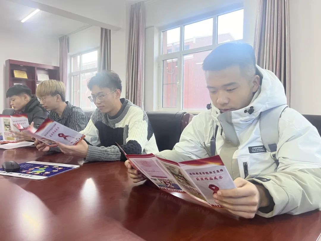 12月1日,国际教育学院于206会议室为联冶金学生和留学生代表宣传艾滋病危害与知识,并为参与宣讲会的同学分发艾滋病知识宣传单。