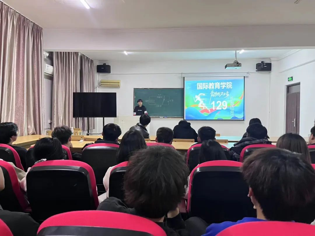 12月5日晚 ,国际教育学院于博远楼107教室召开了“一二·九”冬季长跑比赛动员大会。国际教育学院辅导员张翀睿,学生会、分团委部分学生骨干及全体参赛运动员参加本次会议。