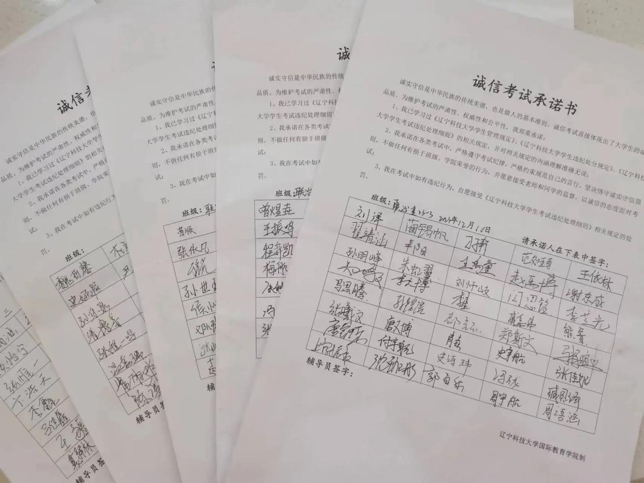 学院积极通过线上线下不同渠道宣传诚信考试教育、多措并举,加强考风建设。2023年12月到2024年1月期间,辅导员面向学院联冶金专业全体学生多次召开线下诚信考试主题教育班会。会上为同学们解读了《米兰电竞(中国)官方网站学生考试违纪处理细则(试行)》,并向同学们强调了考试注意事项及违纪、作弊行为的严重后果。最后向同学们宣读了《诚信考试承诺书》,学院联冶金专业学生全体签署承诺书。此外,还通过在微信群发布诚信考试、积极备考提示等方式,利用网络媒介落实学院考风考纪建设工作。