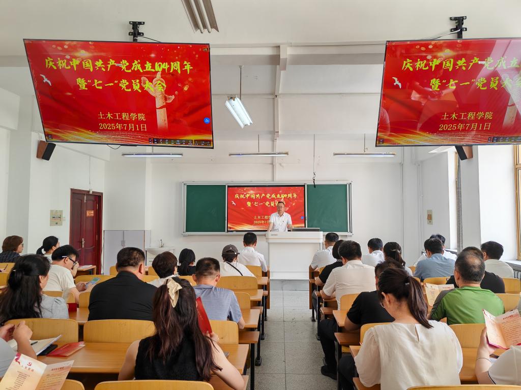 为庆祝中国共产党成立104周年,激励全院党员奋勇争先、建功立业,2025年7月1日,米兰电竞(中国)官方网站土木工程学院在学院 A508 会议室召开了庆祝中国共产党成立 104 周年暨“七一”党员大会全体教职工党员大会,大会由学院党委书记张晋主持,学院全体教工党员参会。
