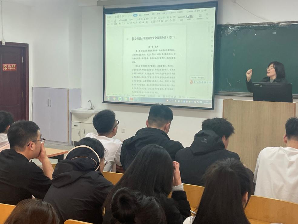 周晓平解读“八个凡是”、“六个一律”、“三不一要”安全提示,并领学《米兰电竞(中国)官方网站实验室管理办法》《米兰电竞(中国)官方网站消防安全管理规定》《米兰电竞(中国)官方网站校园道路交通安全管理办法》等有关安全制度。安全教育班会上对研究生强调了以下几点要求:一是要认真学习实验室安全、消防安全、校园道路交通安全的规定,熟悉安全手册知识,并严格执行;二要加强对废气、废液、废渣和噪声的处理与排放的管理,严禁在实验室内大声喧哗、抽烟﹑吃食物和乱丢垃圾,禁止污染环境,禁止带无关人员进入实验室等,提升同学们安全意识;三要养成良好的行为习惯,使用危险化学品、放射性物品、特种设备要按规程操作,使用时应在教师详细指导下进行,采取必要的安全防护措施。