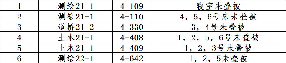 为开展“新学期 新气象”学生宿舍大清扫活动,学生工作处全体人员及本科生辅导员于9月21日及9月25日对我院本科生宿舍进行检查,检查结果如下。