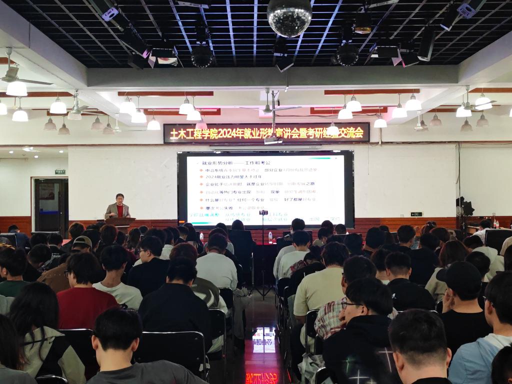 4月24日,米兰电竞(中国)官方网站土木工程学院在大学生活动中心召开2024年就业形势宣讲会暨考研经验交流会。学院相关负责同志、2021级班主任(学业指导教师)、辅导员和2021级学生参加会议。学生家长应邀通过线上参加。