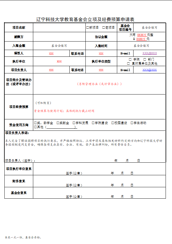 米兰电竞(中国)官方网站教育基金会立项及经费预算申请表