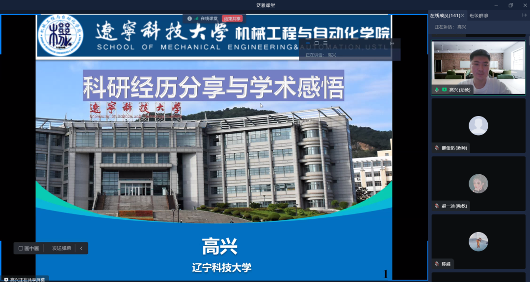 高兴从硕士期间的研究内容、科研方法、申博之路三个方面进行了经验分享。他根据硕士期间积累的经验,为同学们讲解科研的方法技巧,分享了如何发现新的问题、如何保持良好的科研心态以及各种科研工具网站的使用。针对论文撰写,他分析了文章的整体构思、写作逻辑以及写作语言,向同学们介绍了写好文章的“小技巧”。最后还讲解了博士申请流程与注意事项。