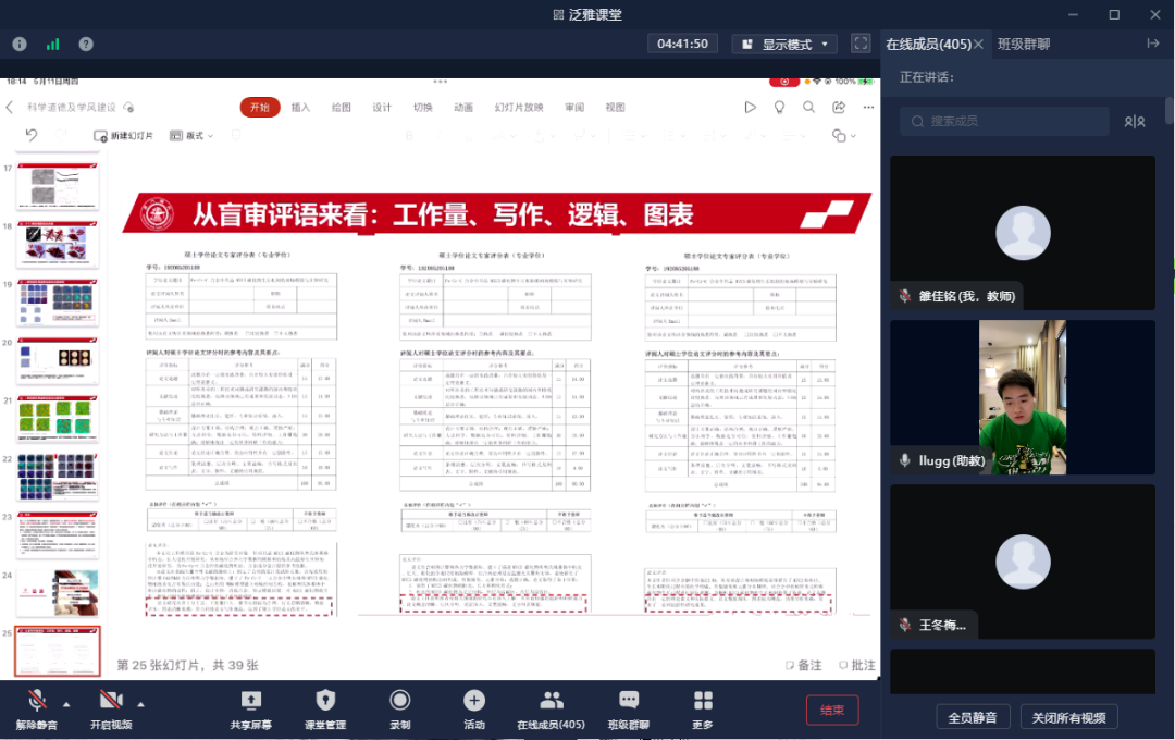 李磊基从硕士期间工作情况、辽宁省优秀硕士论文经验、期刊论文撰写、申博经验四方面做了理论与实践相结合的分享。在介绍完自身硕士期间的研究成果后,他重点分享了获奖秘籍,从硕士学位论文专家评分体系和标准入手,逐一分析如何从论文选题、文献综述、研究方法等方面提高学位论文质量。随后,他分享了学位论文和期刊论文写作“干货”,从文章结构、文字表述、图表制作等如何写,到科研规划、查阅文献、写作训练、团队协作等如何做,他都一一详细讲述,赢得了所有同学的“点赞”。最后,他对如何顺利考博申博提出了三点建议:一是要做好规划,积极参与学术活动,提升学术敏感度;二是提高自己科研能力,丰富科研成果;三是要主动与多个导师取得联系,增加录取机会,如可提前申请参加夏令营、进组学习。