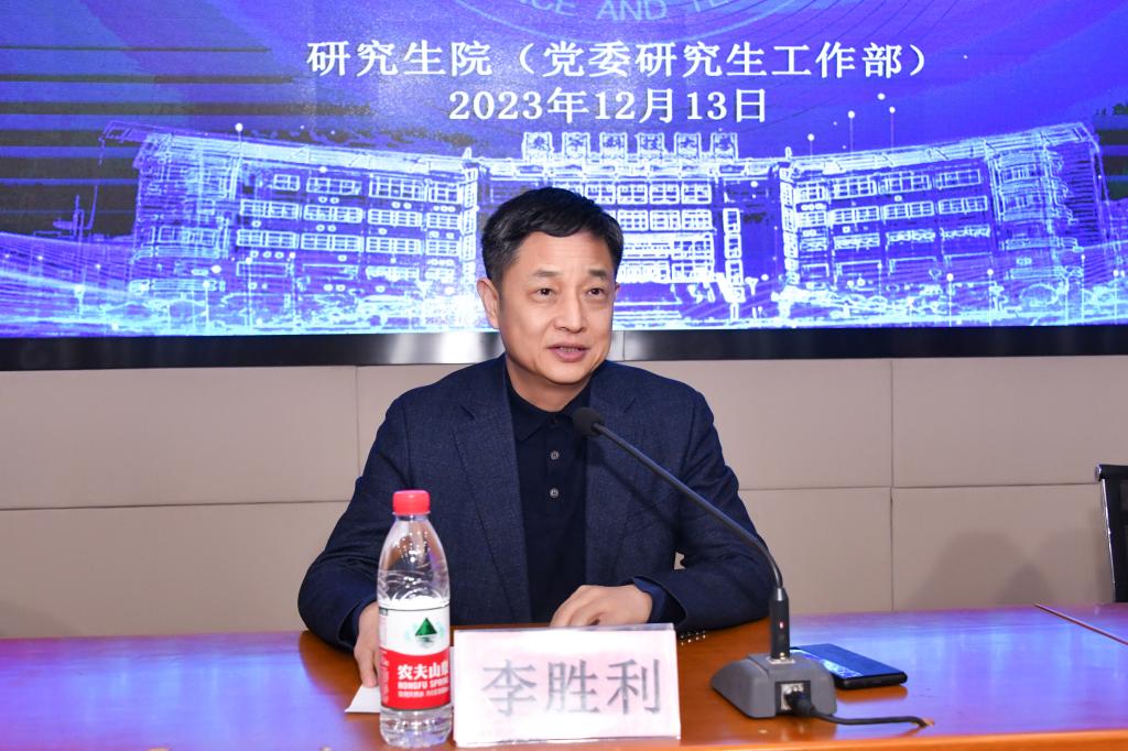 李胜利副校长在讲话中指出,2023年研究生学术报告会各承办学院精心组织筹划,高质量承办11场学术报告会,238名学生汇报学术成果,活动设计别致新颖,很多专家和学生就前沿学术知识和先进的学术理念提出很多新见解;从报告的参与度和辐射面来说,达到了预期效果。随后,他围绕一流学科建设目标,就拔尖创新人才培养提出了三点要求和希望。一是要立足学校高质量发展新格局,做好学术报告的顶层设计和谋划工作,优化组织形式,提升报告的品牌影响力。二是要以学校一流学科建设为目标,从加大学科竞赛的资助力度、增加学生奖励引导等方面加大优秀拔尖创新人才培养。三是要深入贯彻落实立德树人根本任务,在坚定理想信念、厚植爱国主义情怀、加强品德修养等方面多下功夫,培养学生成为爱党爱国爱家爱校,具备浓厚家国情怀和人文素养的时代新人。