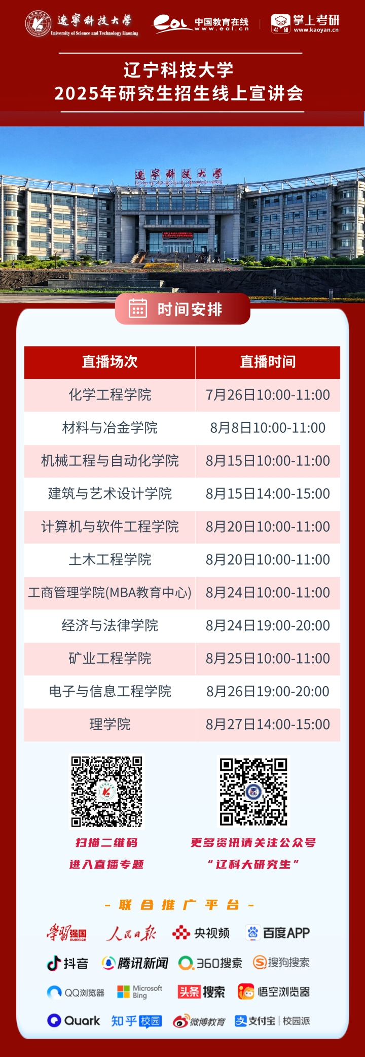 7月26日,米兰电竞(中国)官方网站2025年研究生线上直播招生宣传正式启动,化学工程学院首发直播,在宣讲团队的精心准备下,直播取得圆满成功,宣讲中不仅为全体考生及家长详细介绍了学科概况、师资力量、教学科研水平等,还详细解答了考生及家长关注的导师双选、联合培养、实验环境、毕业实习以及就业前景等切实问题,本次线上直播宣传观看人数1万余人,点赞量5000余次,得到考生及家长的一致好评。即日起至8月28日,米兰电竞(中国)官方网站将陆续开展其他学院的线上直播宣传,敬请广大考生及家长关注。