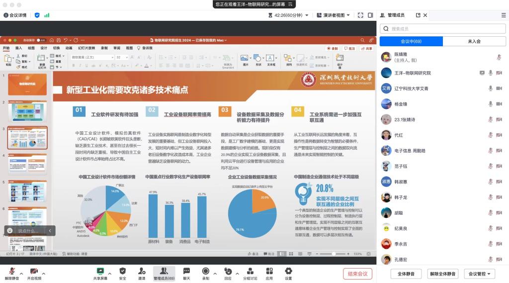启动会上,计算机学院副院长艾青介绍了2024年度计算机学院与深职大研究生联合培养实施细则和联合培养过程的相关要求。杨金锋、王洋、卢山分别介绍了深职大人工智能应用技术研究院、物联网研究院、智能科学与工程研究院开展研究生联合培养的基本情况,深职大研究生导师也对2024年拟开展课题方向和招生要求进行了详细说明。