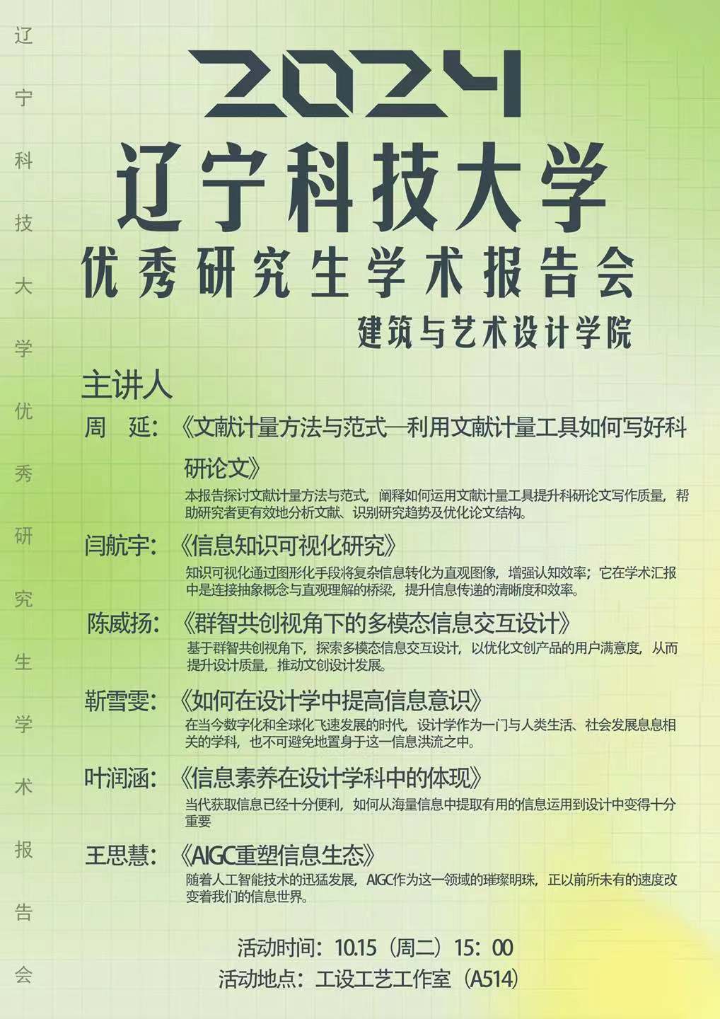 2024年米兰电竞(中国)官方网站建艺学院研究生学术报告会时间安排