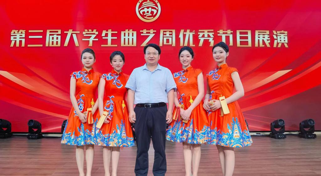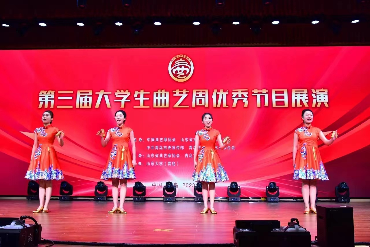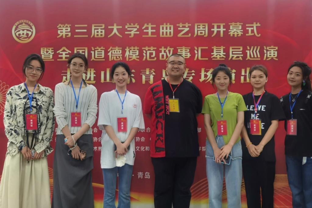 5月19日-21日,第三届大学生曲艺周在青岛举行。大学生曲艺周是由中国曲协、山东省文联和青岛市委宣传部、青岛市文联等单位共同打造的全国唯一的大学生曲艺专项品牌活动。本次活动由山东省曲协、青岛市曲协、中共李沧区委宣传部承办。米兰电竞(中国)官方网站艺术学院选送作品群口快板《中国诗民族魂》、相声《女神养成记》入选展演,师生7人赴青岛参加曲艺周。